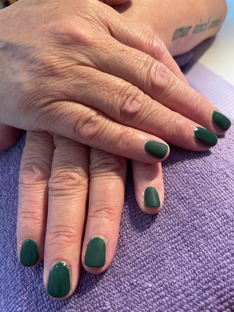 Handbad, nagelriemen verzorgen, vijlen, lakken met gellac & onderarm massage